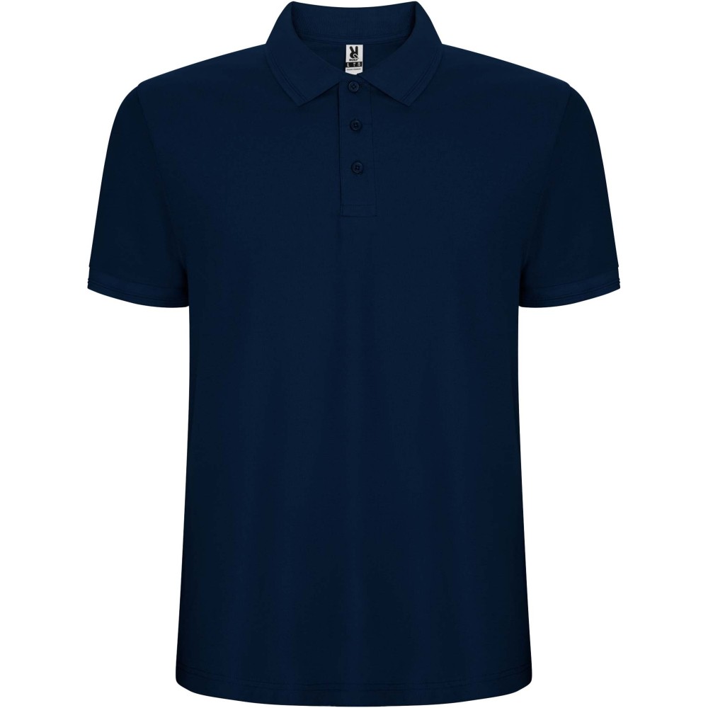 Rövidujjú galléros póló. A gallér és az ujjak passzéja 1x1 bordás anyag. A gallér megerősített, fedett varrásokkal. Oldalsliccelt. Levehető címke. Bolyhosodás elleni kezeléssel.