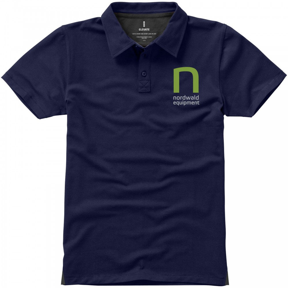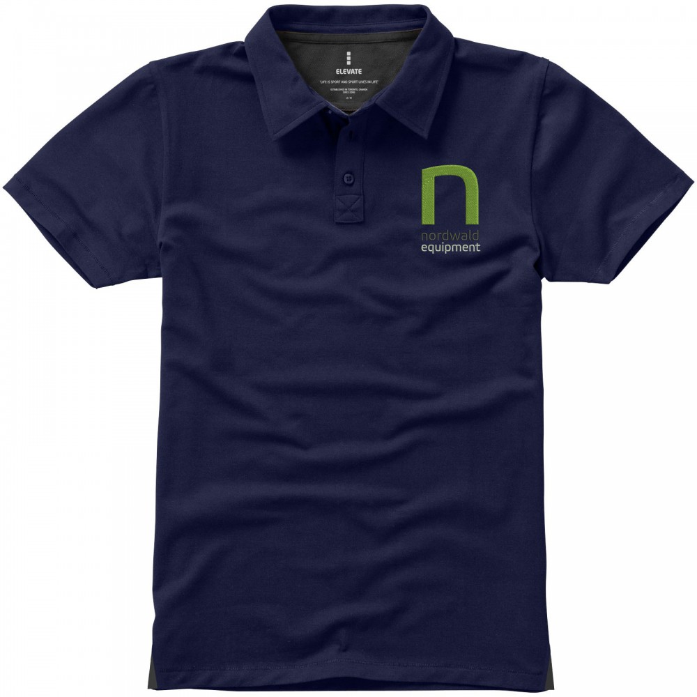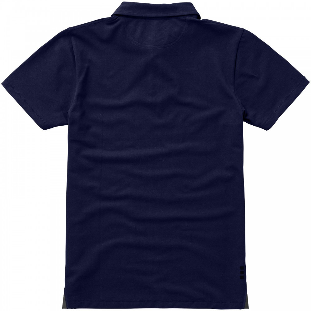 Normál szabásvonal. A férfi modell 3, a női 4 gravírozott, színben illeszkedő gombbal. Az oldalsliccben kontrasztos színű V-betét. Rejtett öltések. Tónusos logónyomat hátul. Kontrasztos színű félhold nyakbetét. Szatén szalagerősítés a nyakrészen. Saját anyagából készült gallér. Dupla piké, 95% pamut és 5% elasztán. 200g/m2.