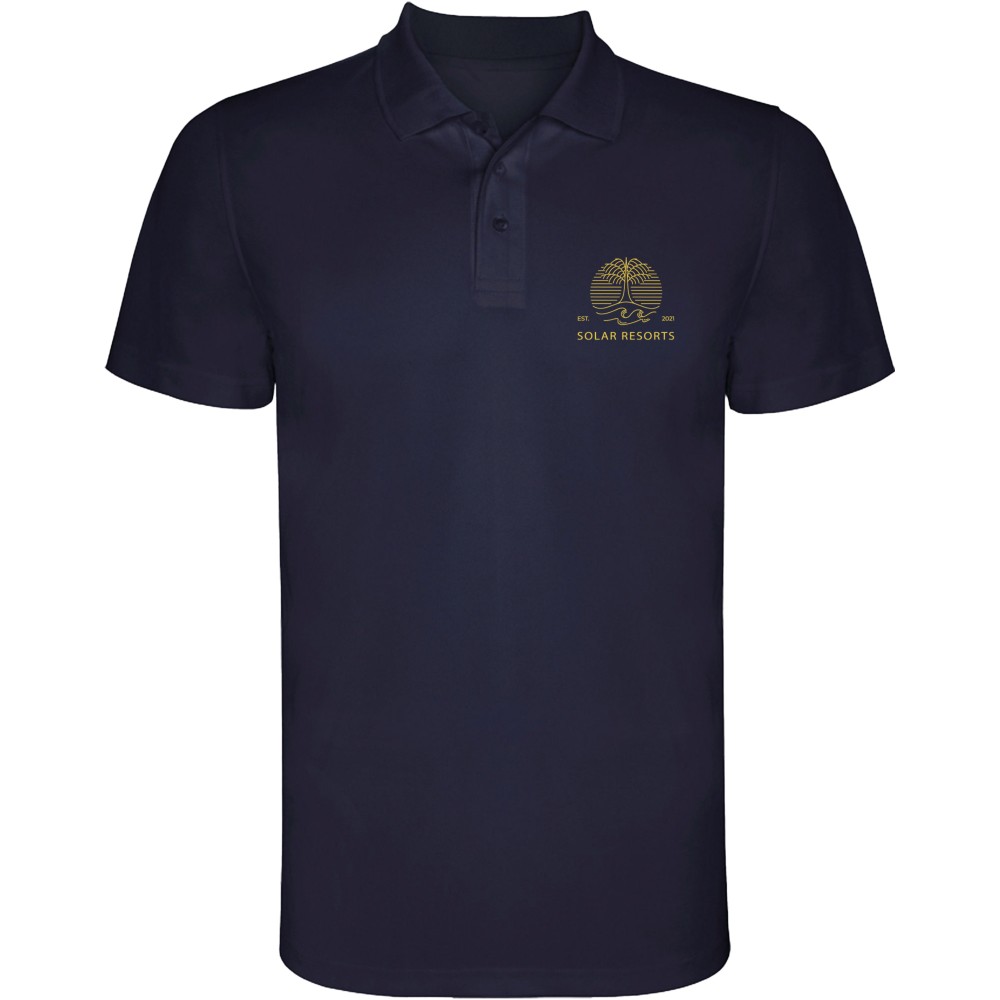 Rövidujjú technikai, galléros piképóló. Kötött gallér 3 gombbal. Légáteresztő, könnyen mosható és szárítható anyag. Légáteresztő anyag. 100% poliészterből készült piqué kötött anyag, 150 g/m2.