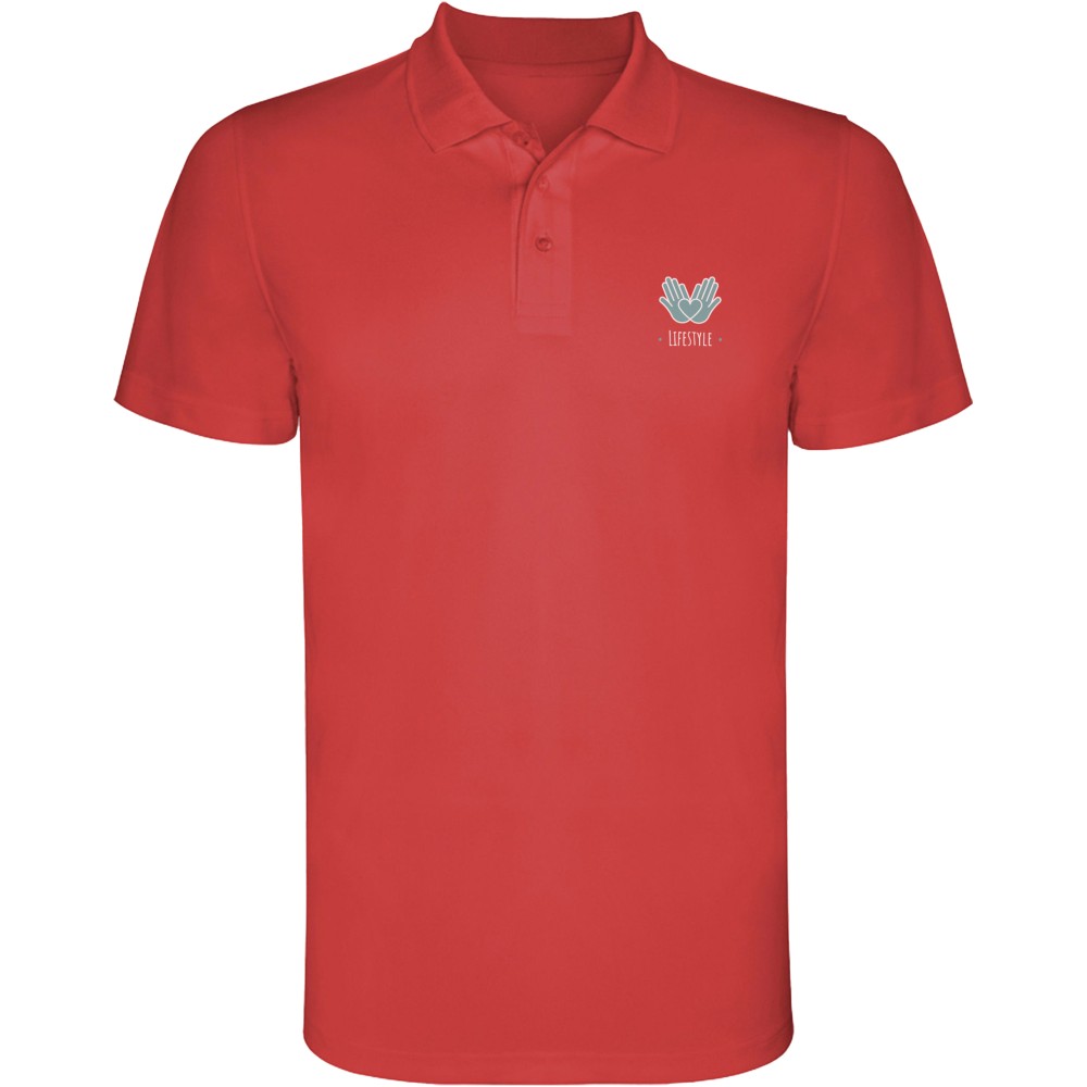 Rövidujjú technikai, galléros piképóló. Kötött gallér 3 gombbal. Légáteresztő, könnyen mosható és szárítható anyag. Légáteresztő anyag. 100% poliészterből készült piqué kötött anyag, 150 g/m2.