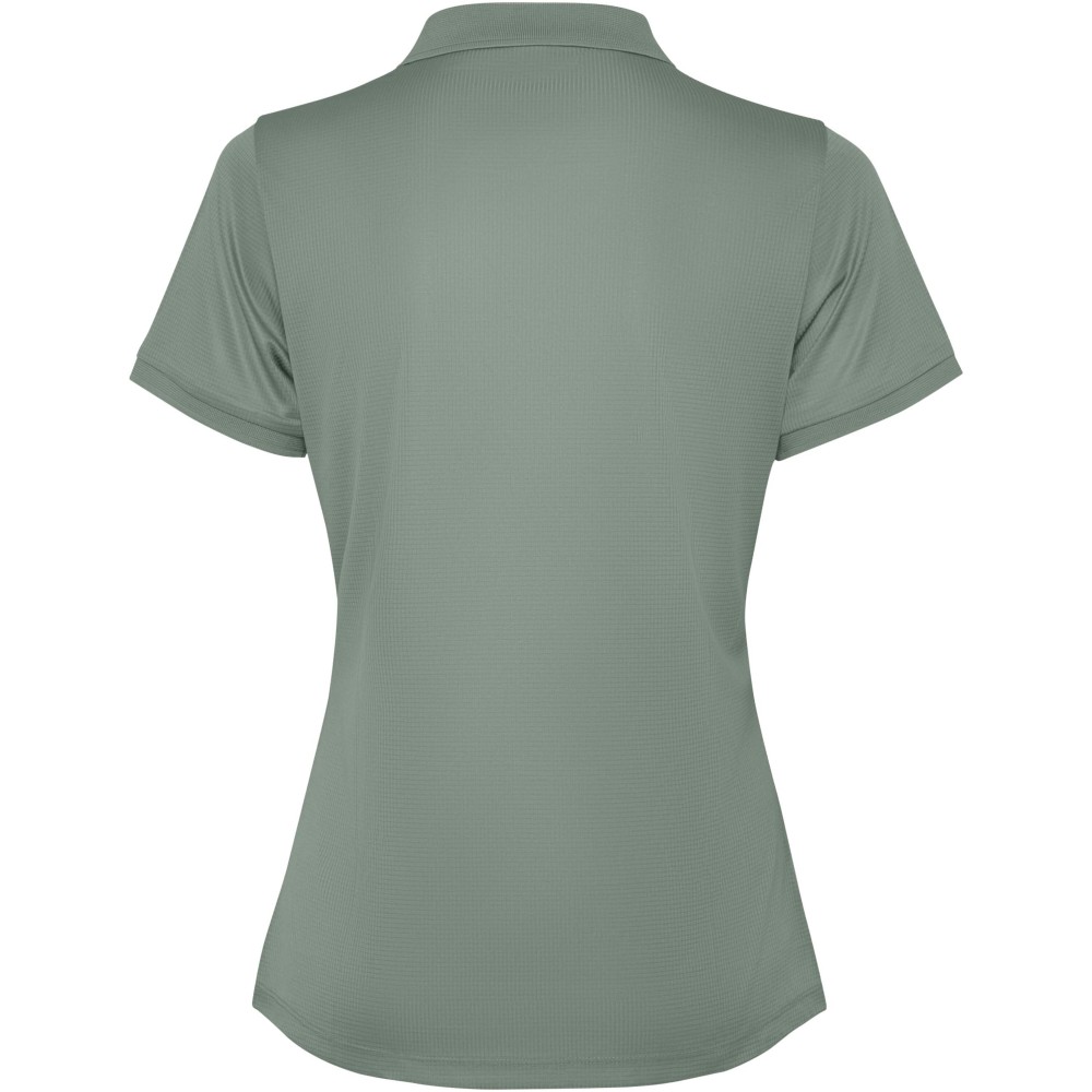 Rövidujjú galléros női póló. Erősített, fedett varrások a belső gallérban. 1x1 bordázott kézelő és gallér. Oldalsó varrások. 3 gombos nyakrész és oldalsliccek. 120g/m2.