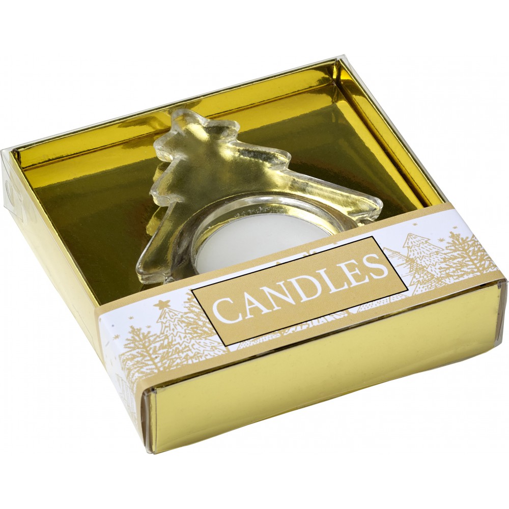 Üveg mécsestartó fenyőfa, arany