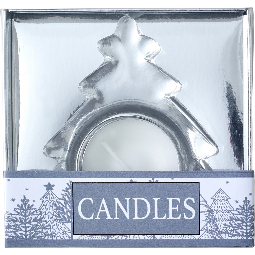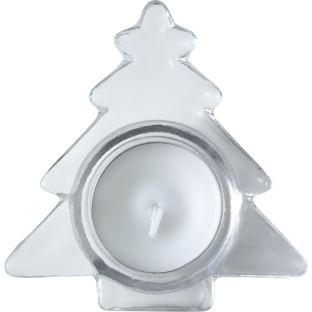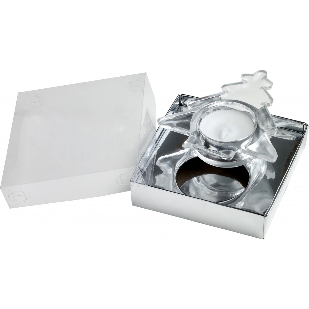 Fenyő alakú üveg gyertyatartó mécsessel. Csomagolása ajándékdoboz.