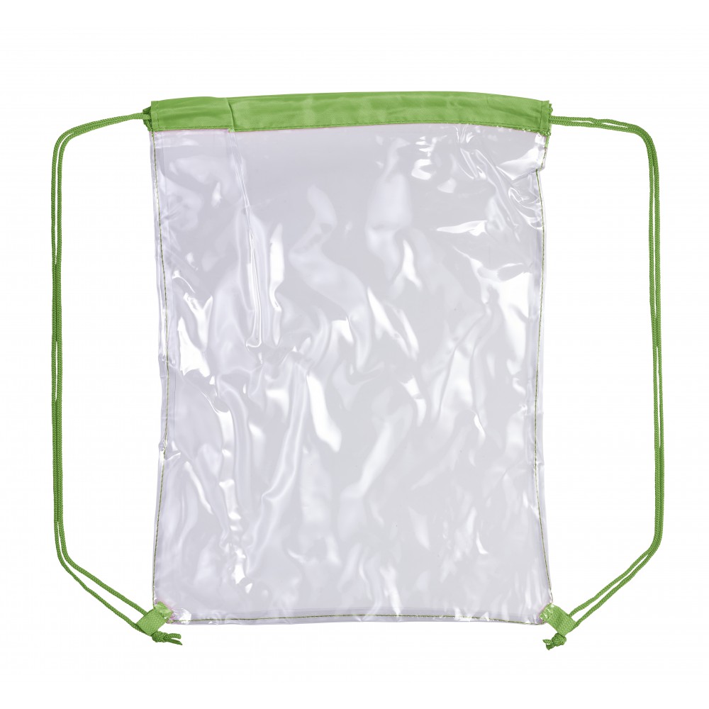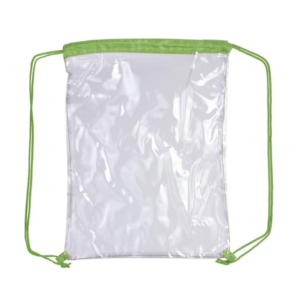 Átlátszó PVC tornazsák színes szegéllyel és összehúzó zsinórral.
