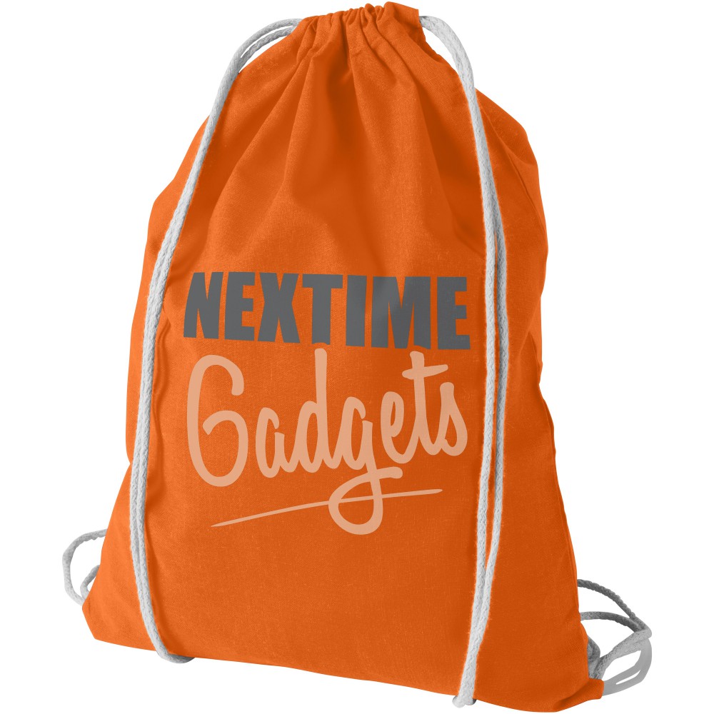 Húzózsinórral zárható nyitott fő rekesz. 100 g/m2 pamut.