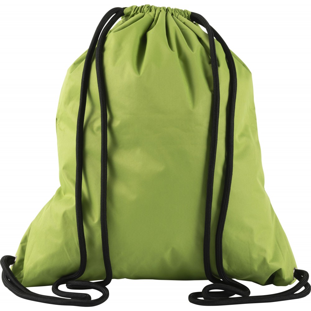 Tornazsák húzózsinórral, elöl cipzáras zsebbel. 190T nylon.