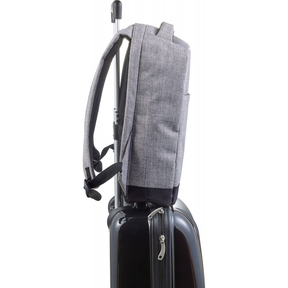 Hátizsák lopás elleni védelemmel, laptoptartóval, sok belső zsebbel, külső cipzáros zsebbel és az oldalán USB csatlakozással. 600D poliészter és PVC hátoldal. 13 -es laptop fér bele.