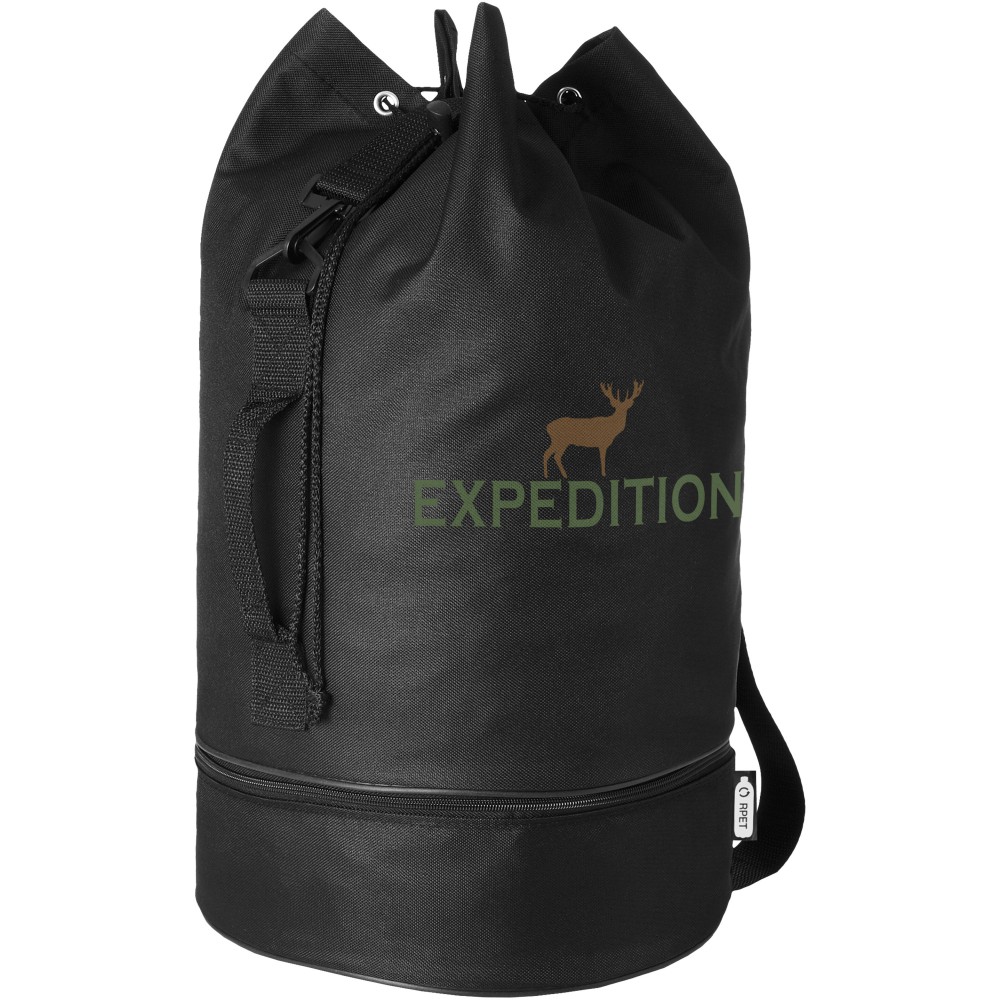 Vízálló tengerészzsák újrahasznosított PET műanyagból, tágas, 20 literes fő rekesszel, húzózsinórral, oldalfogantyúval és állítható vállpánttal. Külön cipzáras alsó rekesszel is rendelkezik a kisebb tárgyak számára.