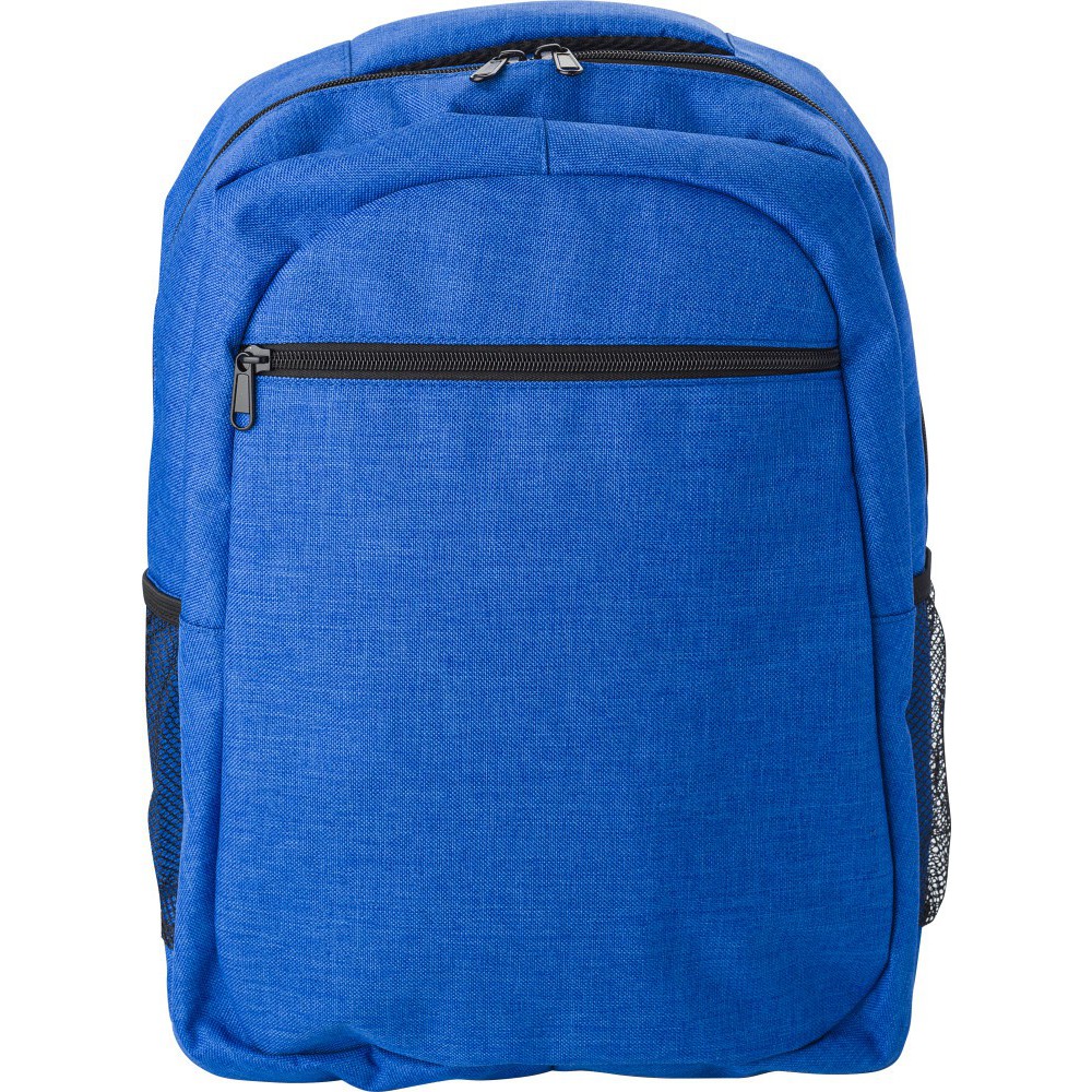 Hátizsák cipzáras elsőzsebbel és állítható vállpántokkal. Belső zseb laptop számára 15 -ig. 2 oldalon hálós zseb. 600D poliészter.