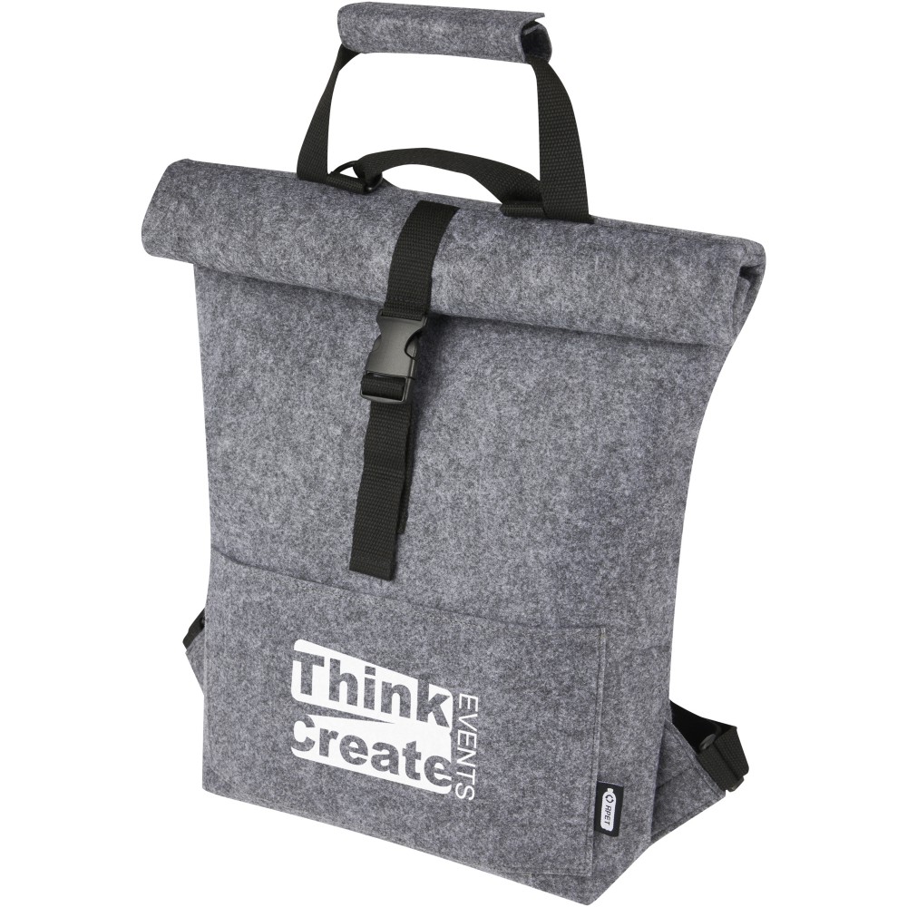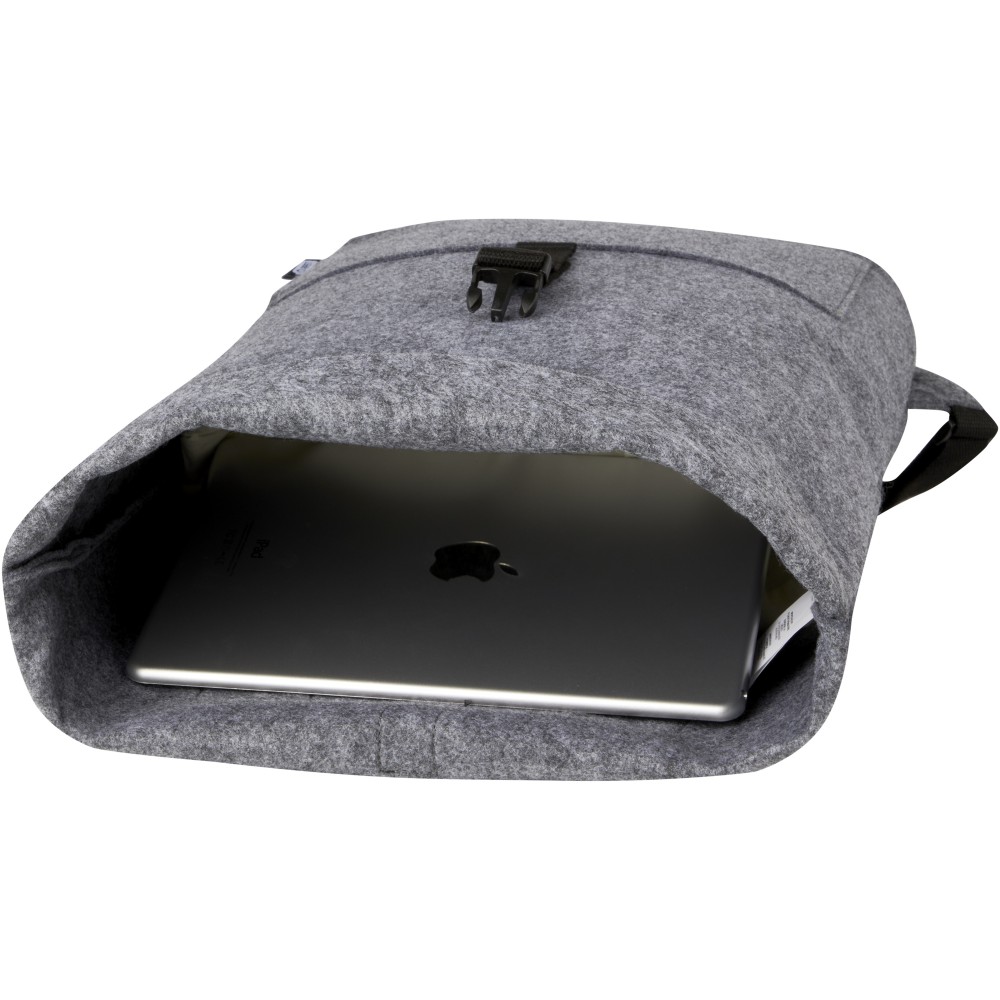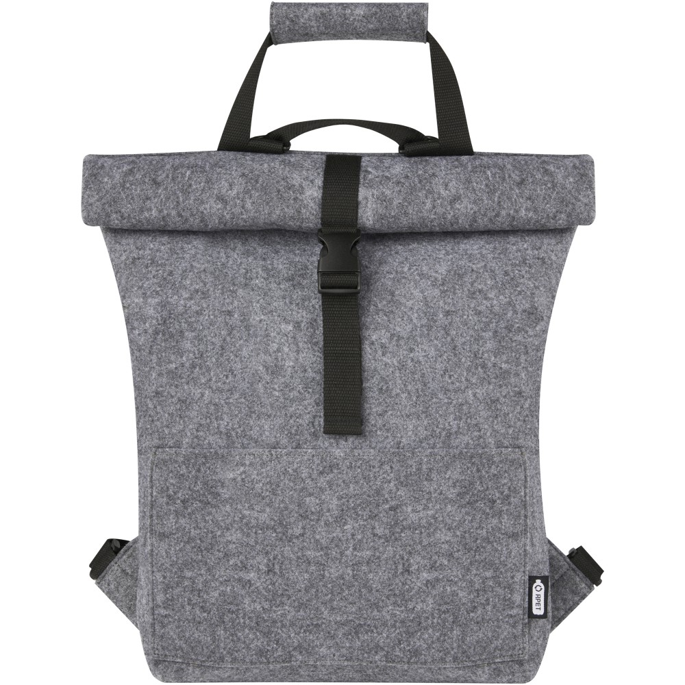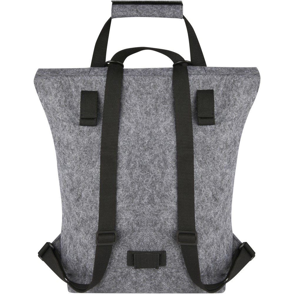 Többfunkciós és trendi kombinált roll-top hátizsák és kerékpártáska kiváló minőségű, puha és tartós GRS tanúsítvánnyal rendelkező újrahasznosított filcből. Nagy fő rekesszel, elülső zsebbel, állítható vállpántokkal és 3 akasztós pánttal, amellyel a táskát a kerékpár hátuljához rögzítheti. A vállpántok könnyen átalakíthatók hosszú füllé, vagy behajthatóak, így a hevederek nem akadnak be a kerékpár kerekébe.