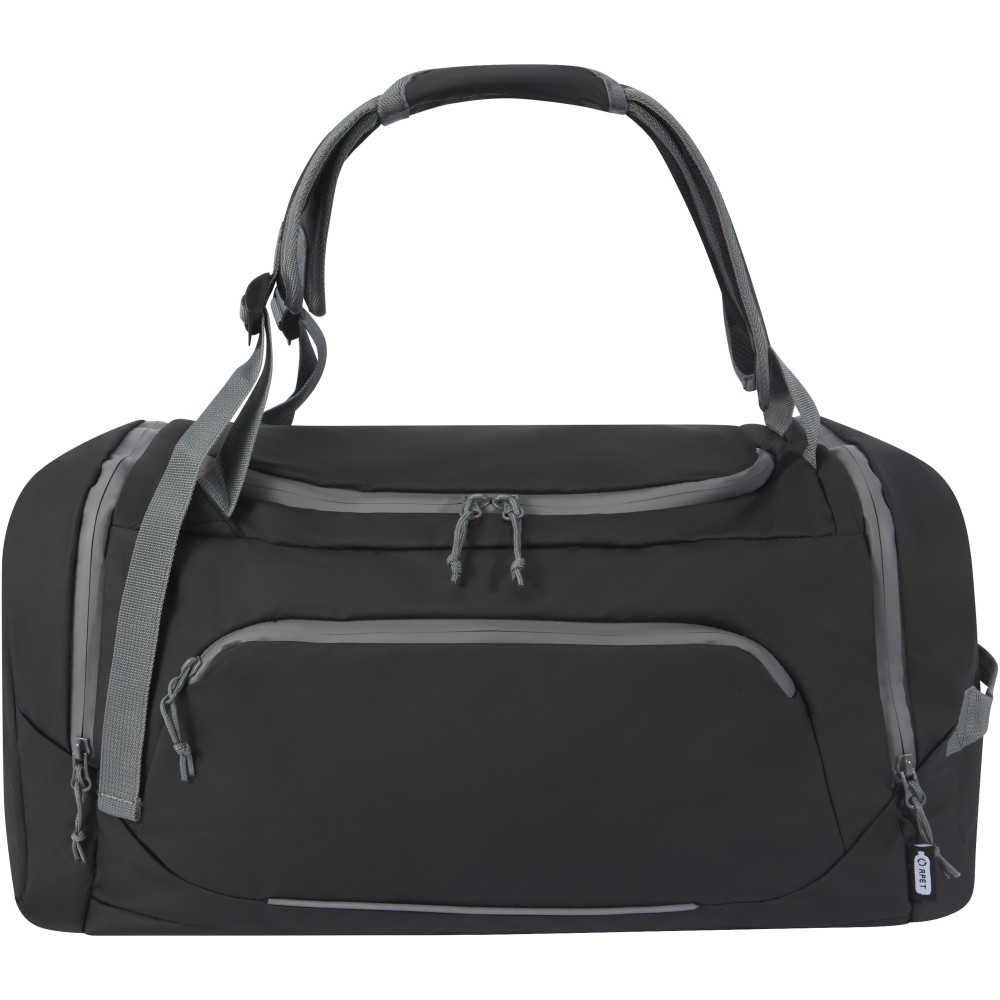 Vízálló 2 az 1-ben sporttáska és hátizsák GRS tanúsítvánnyal rendelkező újrahasznosított anyagokból, beleértve a cipzárakat is. Tágas főrekesszel rendelkezik, U alakú nyílással a könnyű tárolás és hozzáférés érdekében, két cipzáras oldalzsebbel (köztük egy cipőrekesszel), egy cipzáras elülső zsebbel, egy hálós vízzsebbel a hátoldalon, valamint fényvisszaverő csíkokkal a láthatóság érdekében. Ez a táska 3 különböző módon hordható: kézben, vállon átvetve vagy hátizsákként a párnázott és állítható vállpántok segítségével. A GRS újrahasznosított anyagai közé tartozik a főszövet, a bélés, a hevederek és a cipzárak. Űrtartalom: 35 liter. PVC-mentes.