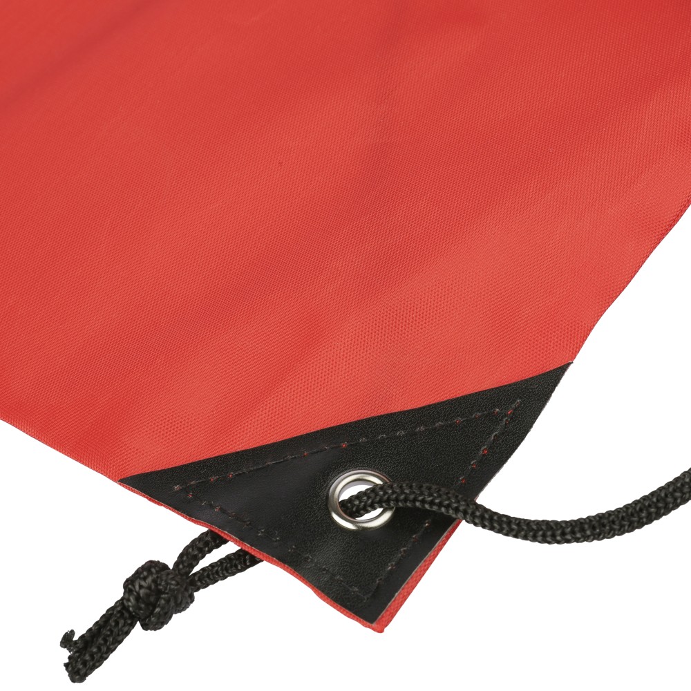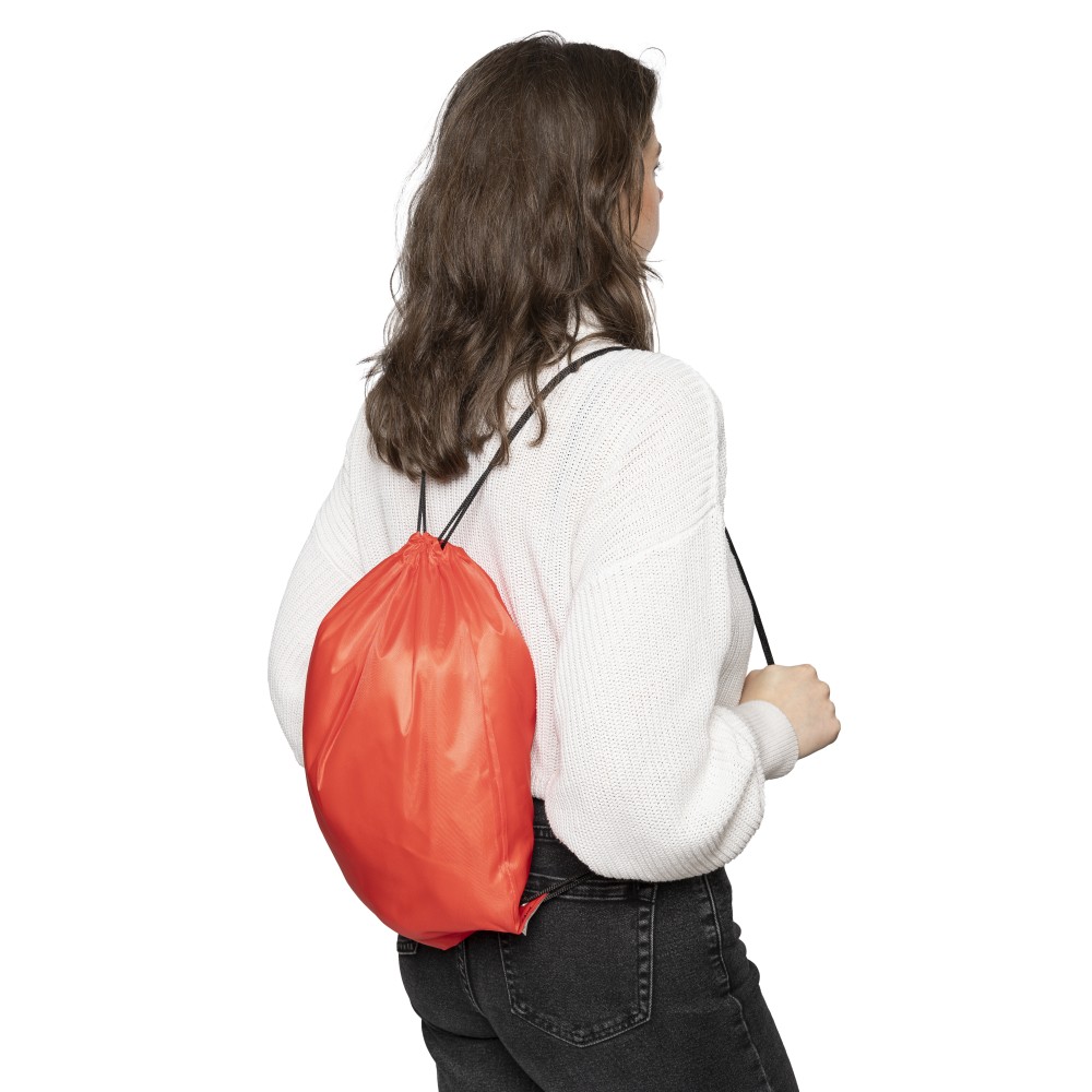 Tornazsák 210D poliészter anyagból, fekete PU sarokerősítéssel az elején, és belső varrással. Fekete nylon húzózsinórral, egy rekesszel. Űrtartalom: 5 liter, teherbíró képesség: 7 kg.