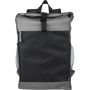 600D rPET poliészter roll-top hátizsák. PU bevonat teszi vízlepergetővé. Rejtett cipzáras első zsebbel, hálós oldalzsebekkel, 15 -es laptop számára kialakított tárolórésszel, 5 tárolórekesszel, állítható vállpánttal. Kapacitása 25 liter, teherbírása 15 kg. Oldalán rPET címkével.
