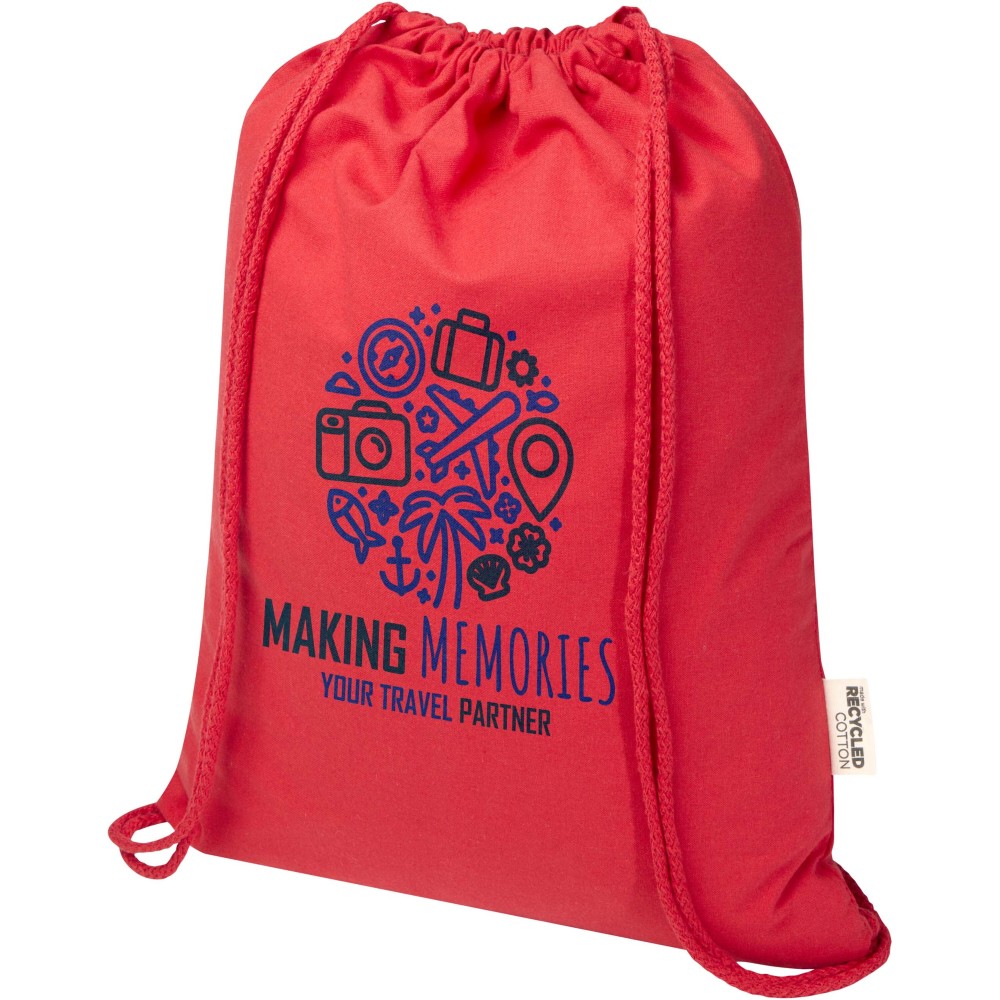 Az Oregon Blend tornazsák 60% GRS tanúsítvánnyal rendelkező újrahasznosított pamutból és 40% GRS RPET anyagból készült, így kiváló ajándék lehet márkaépítéshez vagy marketingkampányokhoz. Ez a könnyű, költséghatékony táska kényelmesen hordható háton vagy vállon, és elegendő helyet biztosít logó vagy egyéb üzenet elhelyezésére. A pamut zsinóros zárás megkönnyíti a nyitást és zárást, a 140 g/m2 sűrűségű pamutanyag pedig erős és tartós.Teherbírás: 5 kg. Űrtartalom: 5 liter.