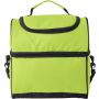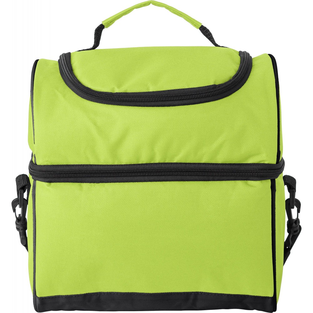 Hűtőtáska, PEVA béléssel, a fedélben külön nyitható résszel, állítható pánttal. 600D poliészter.