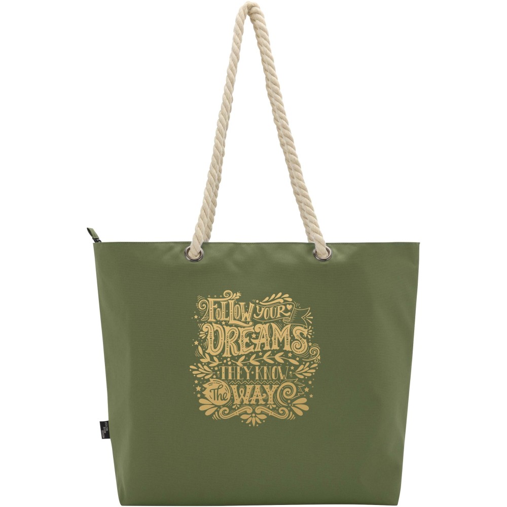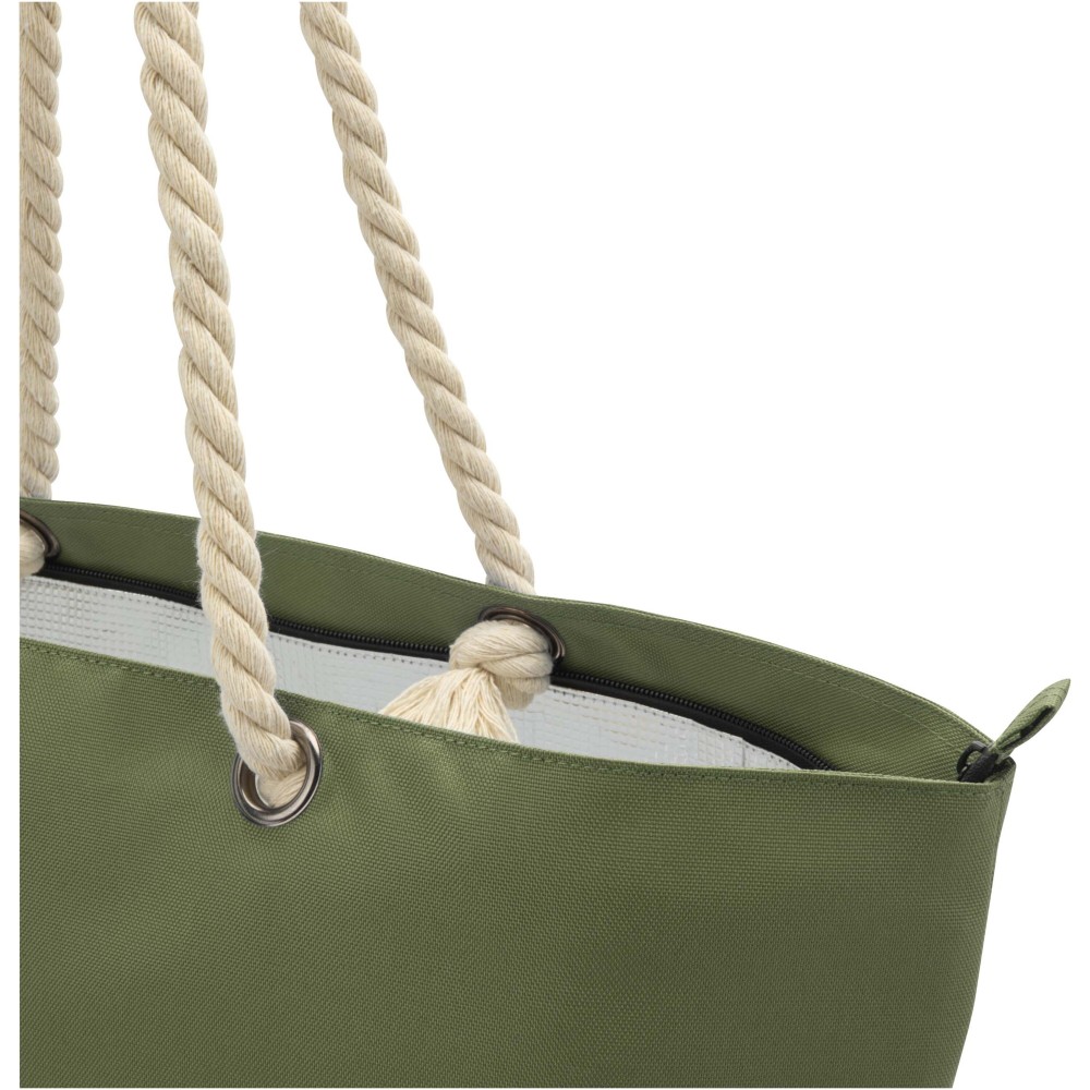 A Panama hűtőtáska GRS tanúsítvánnyal rendelkező újrahasznosított poliészterből készült, és nagy, cipzáras főrekesszel van ellátva. Kiváló minőségű alumínium fóliával bélelt belső résszel és pamut fülekből áll. Ideális bevásárláshoz, strandoláshoz vagy egy parkbéli kiránduláshoz. Űrtartalma: 23 liter. Teherbírás: akár 10 kg. PVC-mentes.