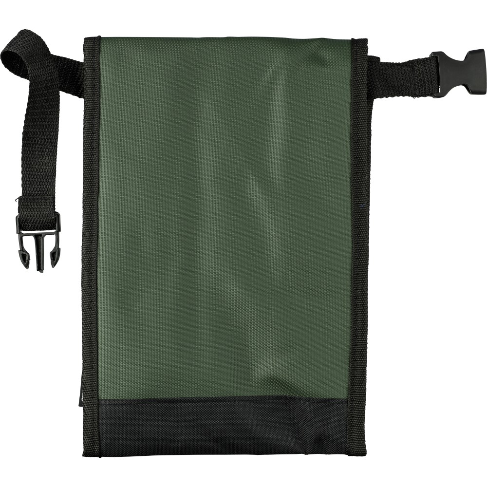 600D rPET poliészter hűtőtáska. PU bevonat teszi vízlepergetővé. Alumíniumfóliás béléssel, első cipzáras zsebbel, három tárolórésszel, hálós oldalzsebbel, tépőzáras záródással. Csatos hordozópánttal. Kapacitása 5 liter. Oldalán rPET címkével.