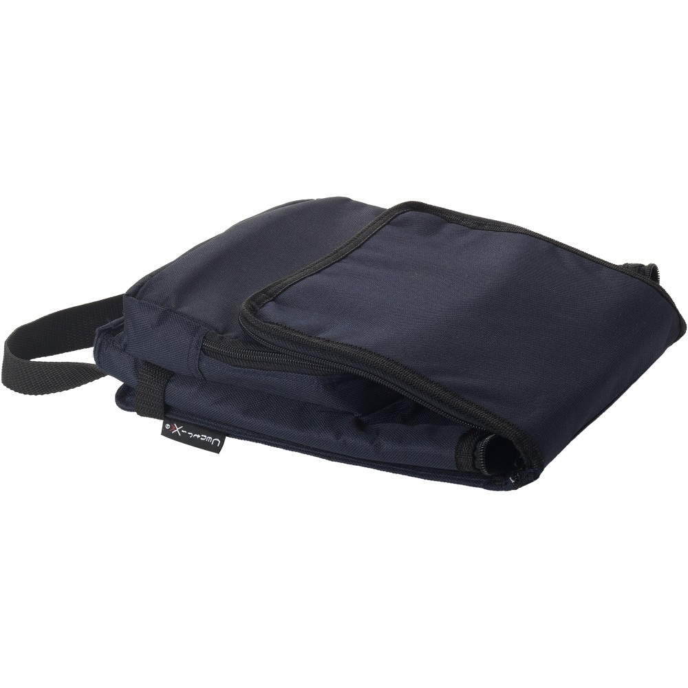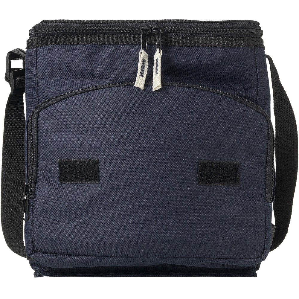 Összehajtható hűtőtáska cipzáras fő rekesszel és cipzáras elülső zsebbel. Állítható vállpánt. A hűtőtáska laposra hajtható az elülső zseben található horog és hurok segítségével. Egyéb kiegészítőt nem tartalmaz.