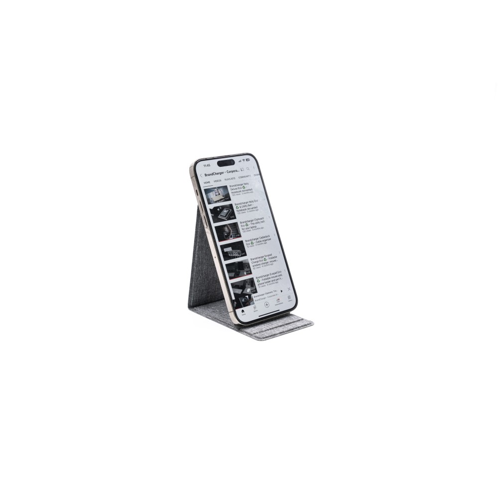 Az Ascend Charge Eco egy RPET-ből készült, fenntartható telefon- és táblagép tartó, amelyet az Recycled Claim Standard (RCS) tanúsít. 15 W-os gyors vezeték nélküli töltéssel rendelkezik, MagSafe kompatibilis, és szilikon MagSafe matricát is tartalmaz. Állítható szögével és összecsukható kialakításával praktikus, környezetbarát kiegészítő minden munkaterülethez. Szabadalommal védett az egyedülálló funkcionalitás érdekében.
