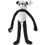 Plüss panda hosszú kezekkel és lábakkal, melyek végén tépőzár található. A tépőzárak segítségével textil felületeken könnyen rögzíthető. Hímzett szemek, emblémázható címke a fülben.