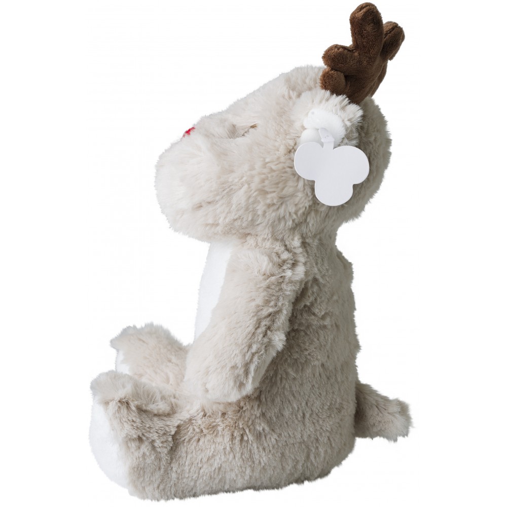 Plüss szarvas. Az 5013-as pólóba öltöztethető. Fülében emblémázható címke található.