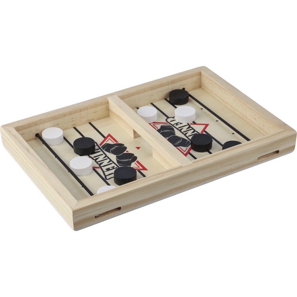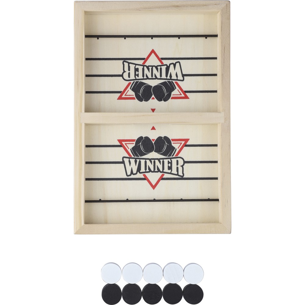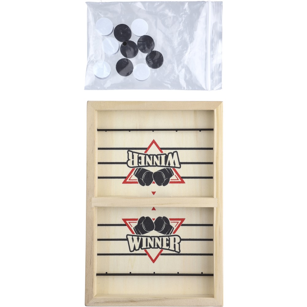 Fa társasjáték. Tartalma 10 db korong (5 db fekete, 5 db fehér) és egy játékszabály. Gyorsan elsajátítható játék gyerekek és felnőttek számára. A flipperre és a gombfocira emlékeztető játék, amire sling puck néven keresve több videót találhattok. Csomagolása illusztrált barna papírdoboz.