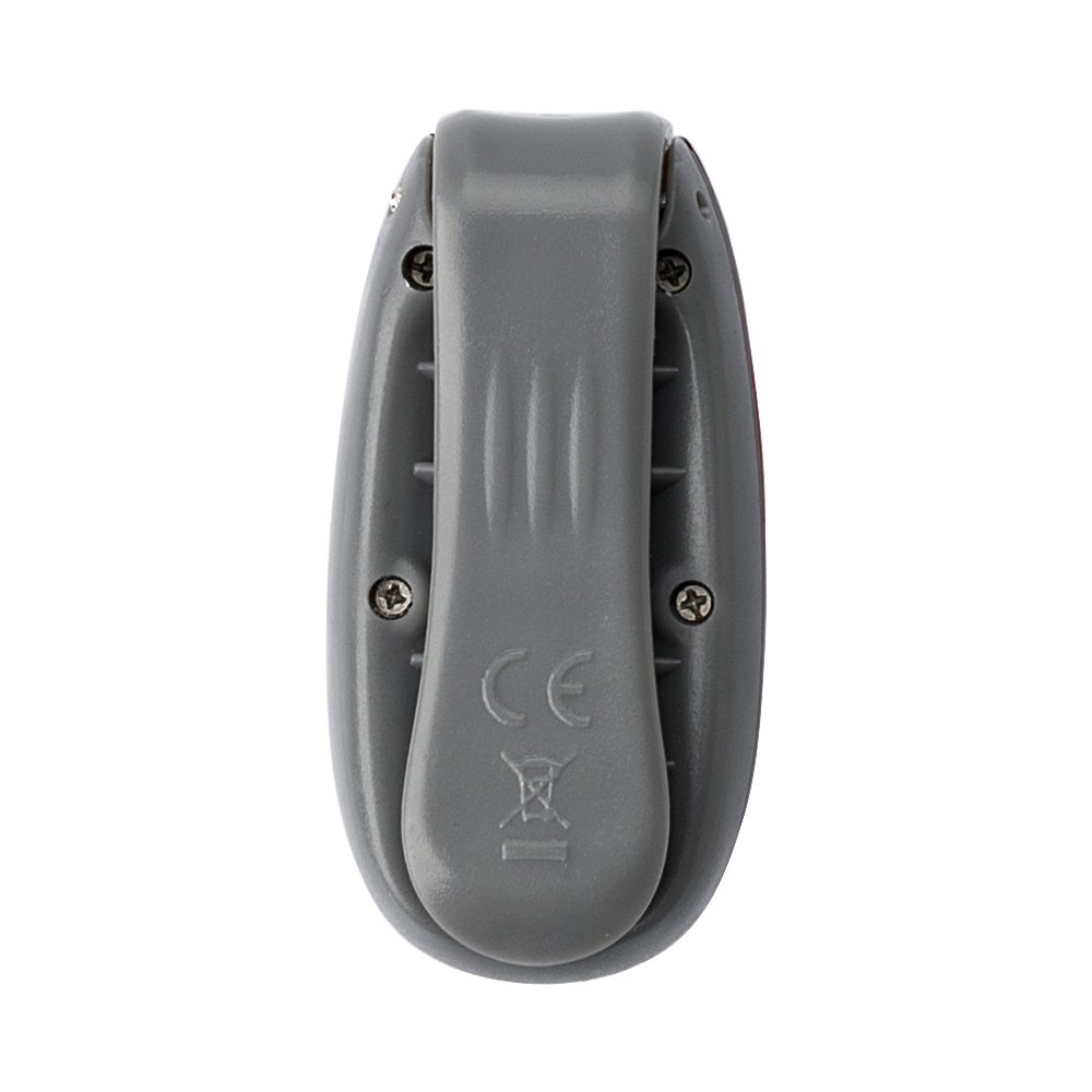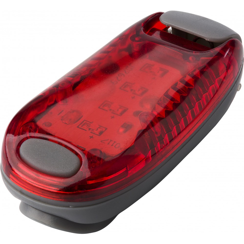Lámpa klipsszel. A lámpát kétféle módon lehet beállítani: folyamatosan világító és villogó. ABS, poliészter, gumi, PS.