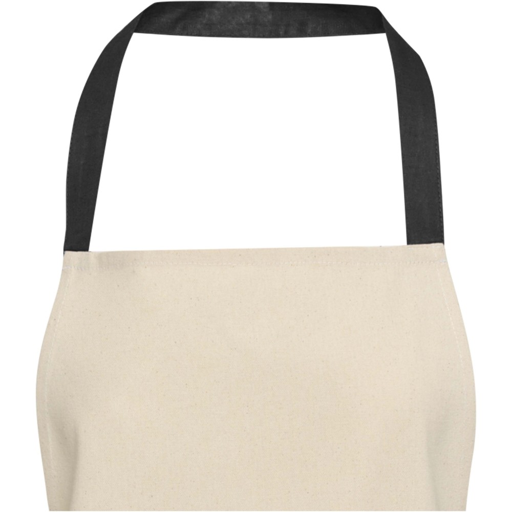 A Nia kötény 100% GRS tanúsítvánnyal rendelkező, 200 g/m2 újrahasznosított pamutból készült. Természetes pamut színe és kontrasztos nyakkpántja elegánsan védi ruhádat főzés közben. Két egymás melletti zsebbel rendelkezik, összesen 45 x 20 cm-es mérettel, és 1 méter hosszú pánttal rögzíthető hátul.