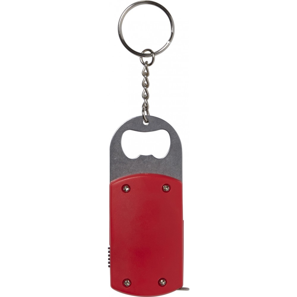 Fém üvegnyitó kulcskarikával, egy fehér LED fényforrással és mérőszalaggal. Az elemet tartalmazza.