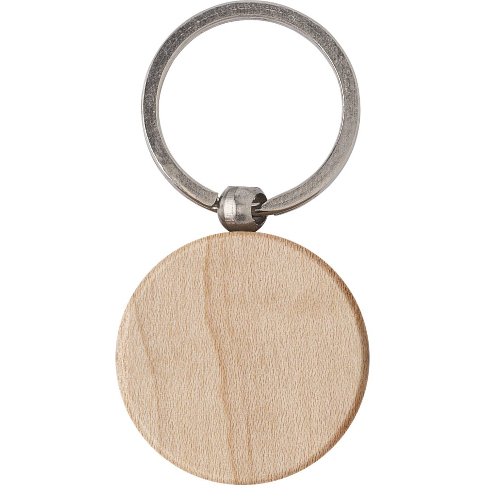Fa kulcstartó fém karikával.