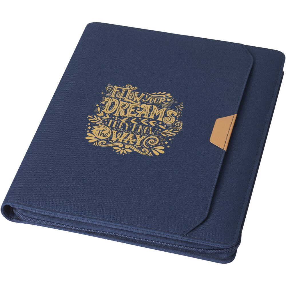 Az RCS tanúsítvánnyal rendelkező Nomumi portfólió részben újrahasznosított poliészterből készül, így ez a portfólió fenntarthatóbb választás, mivel segít csökkenteni az új nyersanyag felhasználást. Cipzáras záródással, tollhurokkal, harmonikazsebbel és 20 fehér vonalas lappal rendelkezik, amelyek 70 g/m2 -es, fenntartható forrásból származó, újrahasznosított papírból készültek. A képeken látható toll és egyéb kiegészítők nem tartoznak a termékhez.