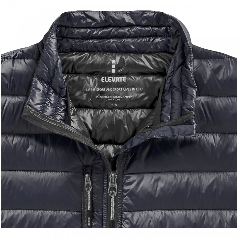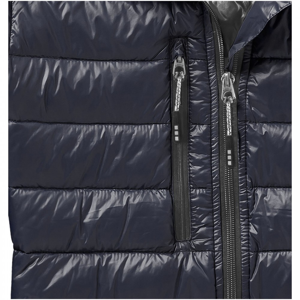 Normál szabásvonal. Pehelybiztos anyag. Cipzáros mell- és oldalzsebek. Szél elleni állvédő betét a nyaknál. Gumis szegély az aljon és a karöltőben. Vízlepergető, lélegző és szélálló. Hátul fényvisszaverő logónyomat . Könnyen megfogható cipzárhúzókák . A RedDot Design Díj nyertes Scotia dzsekivel megegyező minőség. 100% nylon, szőtt anyag, dupla vízlepergető bevonat, 20D. 80% pehely és 20% toll töltet.