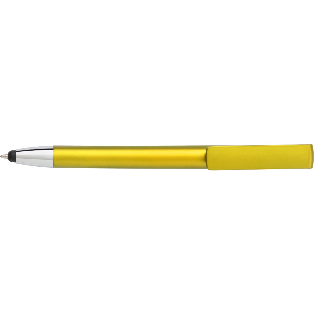 Golyóstoll telefontartóval, kék tollbetéttel, sárga