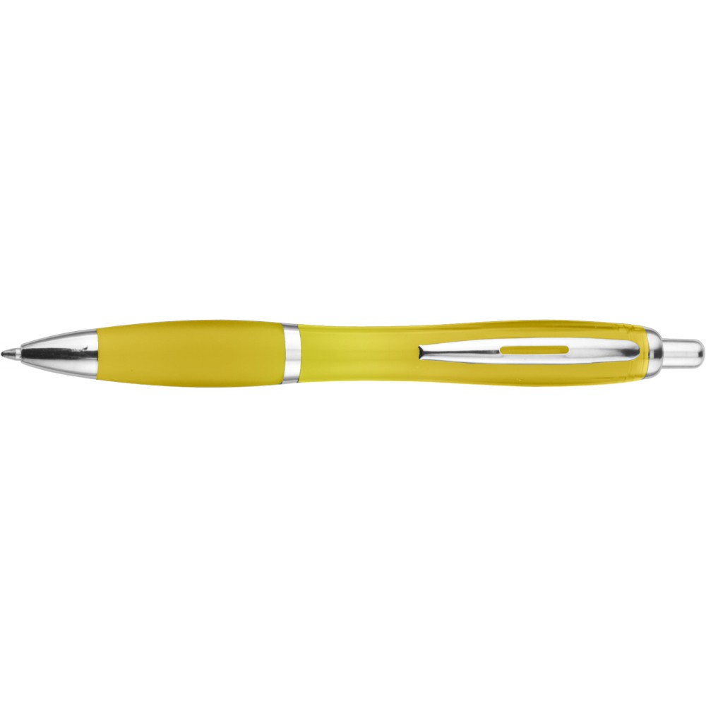 Újrahasznosított ABS műanyag golyóstoll kék tollbetéttel.