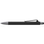 Golyóstoll gumis bevonattal, érintővel, kék tollbetéttel. ABS, PP műanyag, szilikon, vas.