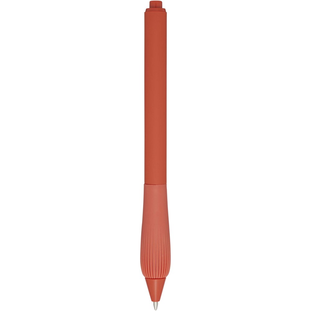 Újrahasznosított műanyag golyóstoll gumírozott tolltesttel és TPR anyagból készült fogórésszel. Kék tollbetéttel. Írási hossz: 1000 méter. Hegyméret: 1,0 mm.