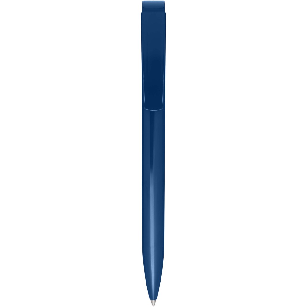 Golyóstoll, amelynek teste és klipsze újrahasznosított műanyagból készült, a hegy pedig rozsdamentes acélból. Kék tollbetéttel. Íráshossz: 3000 méter. Hegyméret: 1,00 mm. Németországban készült.