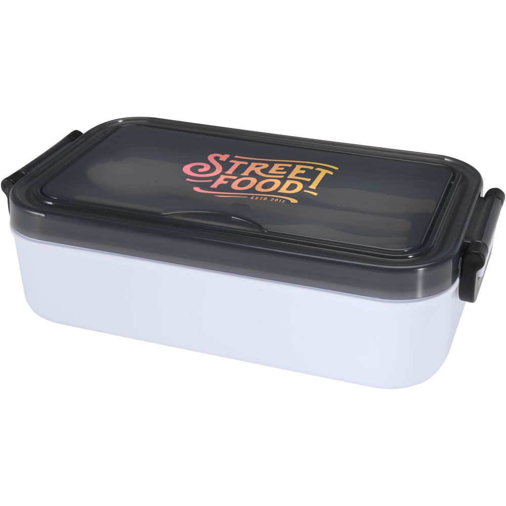 Tedd egyszerűvé az étkezést ezzel a stílusos ételtároló dobozzal és hozzáillő evőeszköz készlettel. Tágas rekesze frissen és rendezetten tartja az ételeket, így mindig készen állnak a fogyasztásra. A mellékelt evőeszközök a doboz tetején található külön rekeszben kaptak helyet, ami megkönnyíti a szállítást - tökéletes választás munkába, iskolába vagy utazáshoz.