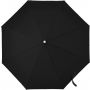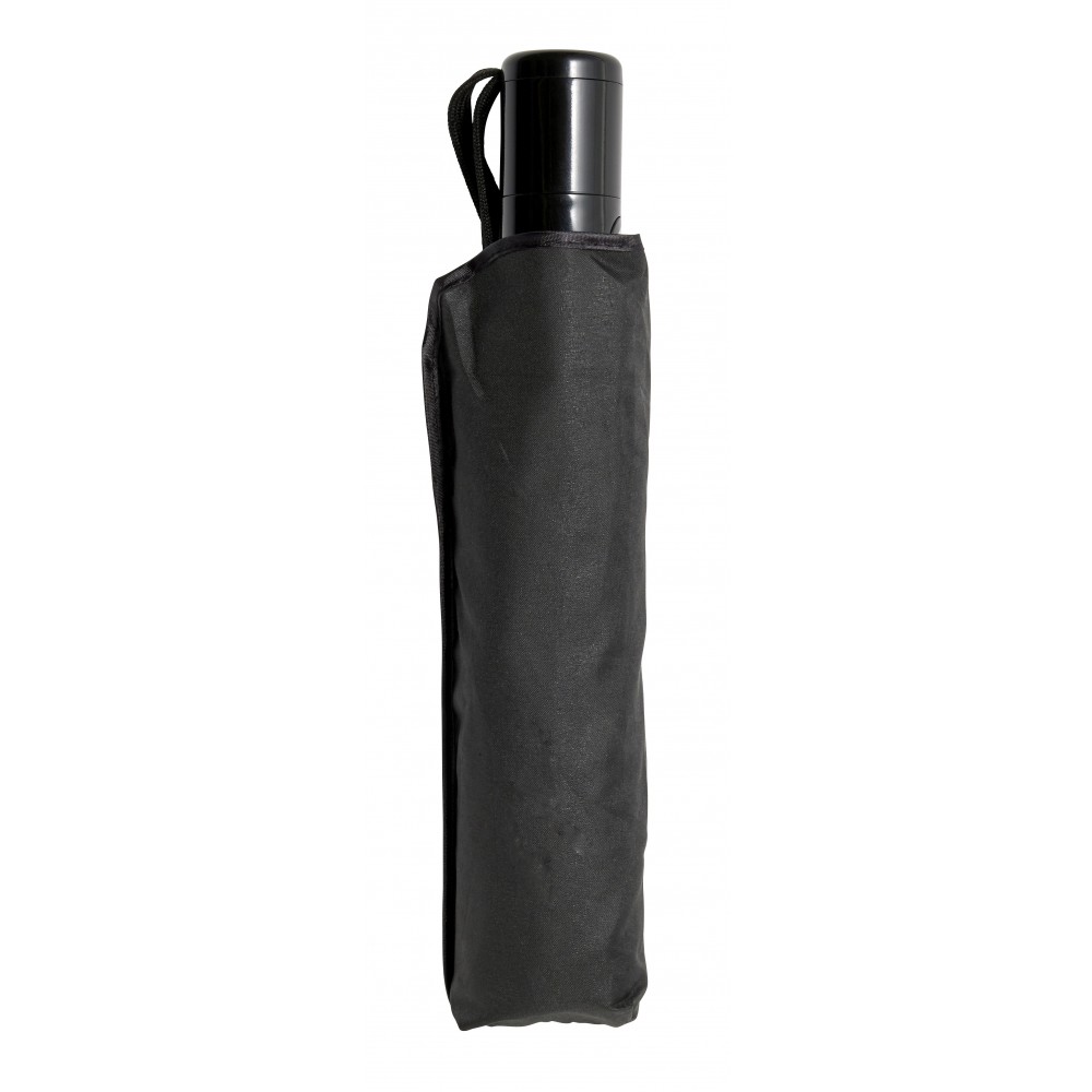 Összecsukható automata esernyő fém vázzal, üvegszálas bordákkal, műanyag fogóval, tokkal.