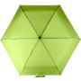 Összecsukható, automata esernyő (21 inch), hat panellel és acél vázzal. Az esernyő tépőzáras záródásán RPET címke található, műanyag karabineres fogantyúval, tokkal. Szélálló. Anyaga: RPET 190T.