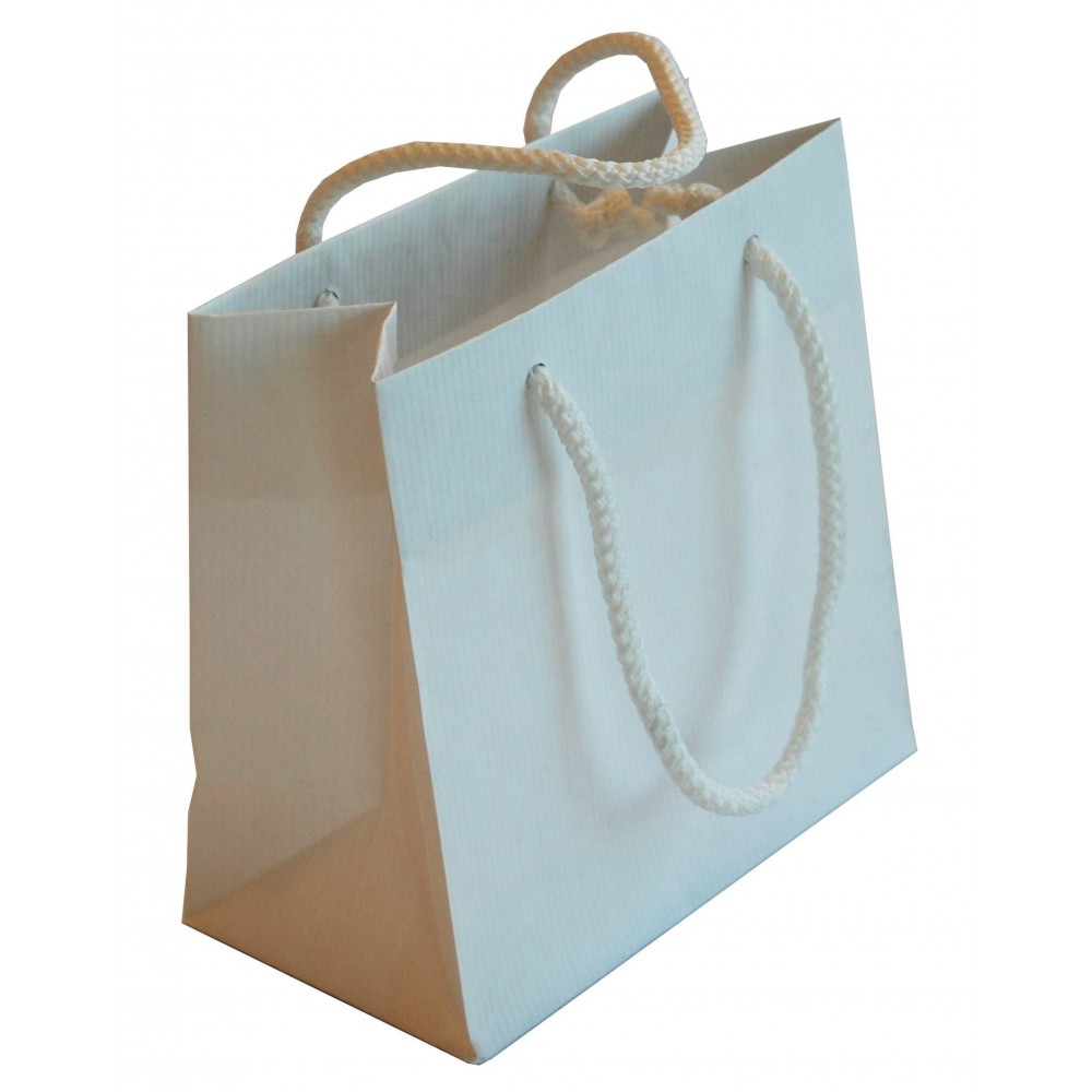 Zsinórfüles papírtáska. 120 g-os, bordás kraft anyag. Talpszélesség: 8 cm.