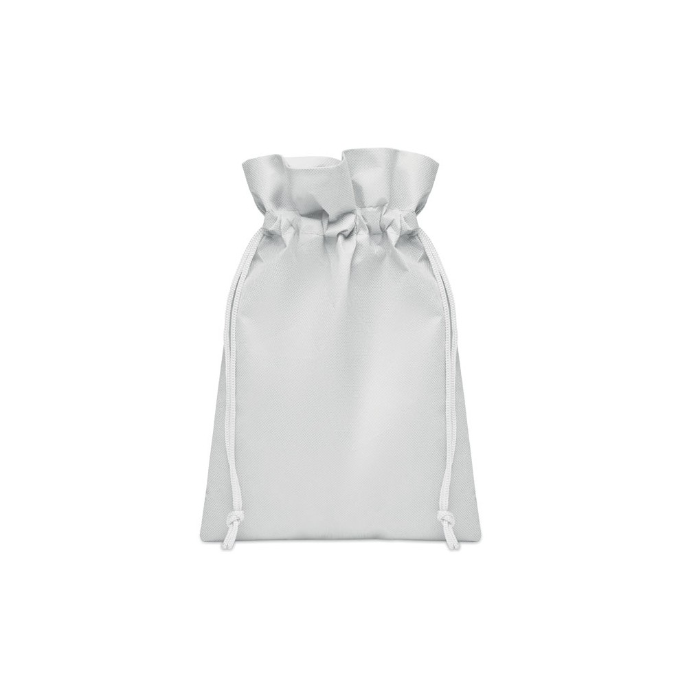 Kis zsinóros ajándéktasak RPET 80 g/m2 nemszőttes anyagból. Méret kb. 20x30 cm.