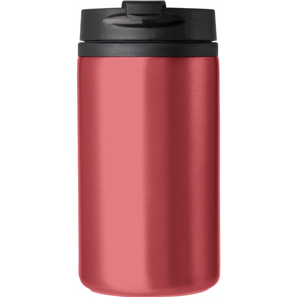 Duplafalú termoszpohár. A külső fal rozsdamentes acél, a belső fal műanyag. A csavaros fedél szivárgásmentes. A pohár alja csúszásgátlóval van ellátva. 300 ml. BPA-mentes műanyag. Nem mosogatógépálló termék.