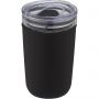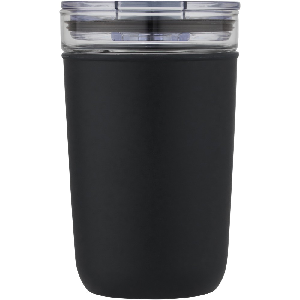 Újrahasznosított műanyag tokkal védett üvegpohár. A pohár 100%-ban tartós boroszilikát üvegből készült, amely megőrzi az ital frissességét, és nem tartalmaz semmilyen káros vegyszert. BPA-mentes, a német élelmiszerbiztonsági törvény (LFGB) szerint tesztelt és jóváhagyott. Ftaláttartalomra tesztelve és jóváhagyva a REACH előírásai szerint. A pohár a legtöbb kávéfőző alá illeszkedik. Nem szivárgásmentes. Szénsavas italokkal nem használható. Mosogatógépben mosható, de mikrohullámú sütőben történő melegítésre nem alkalmas. Űrtartalom: 420 ml. Újrahasznosított karton díszdobozban.