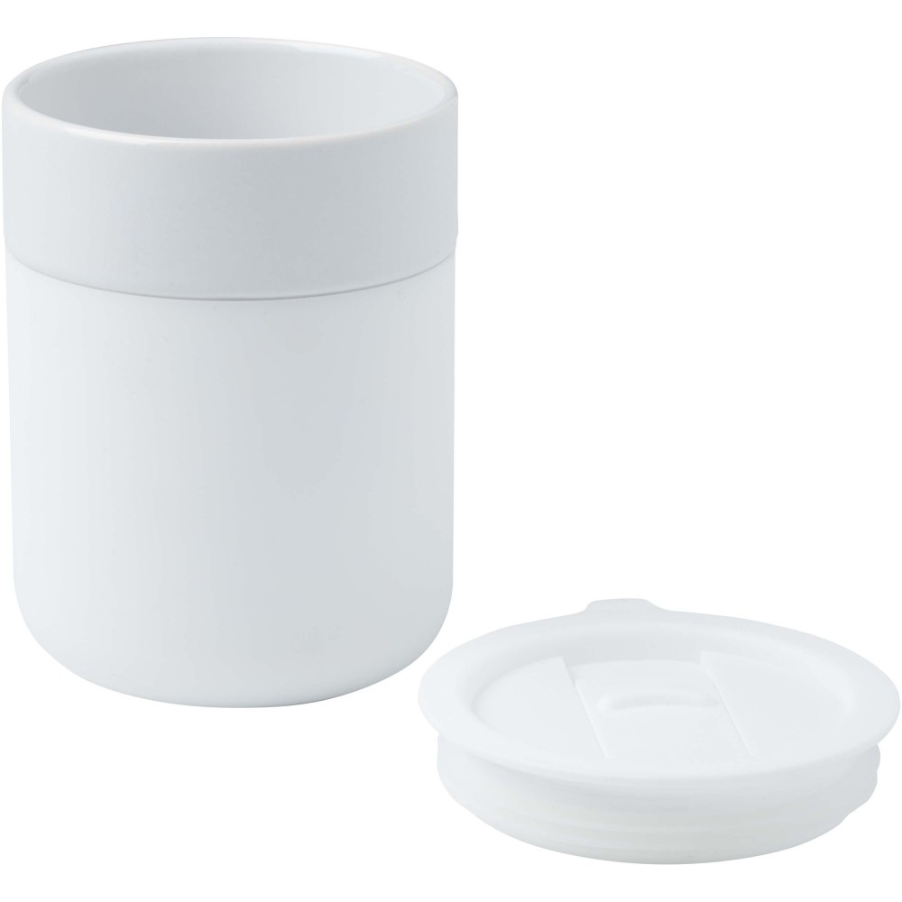 A Java egyfalú kerámia pohár egyszerű és praktikus kialakítással rendelkezik a mindennapi használatra, és szilikon borítással a kényelmes fogás érdekében. Cseppmentes fedéllel rendelkezik. Űrtartalom: 330 ml.