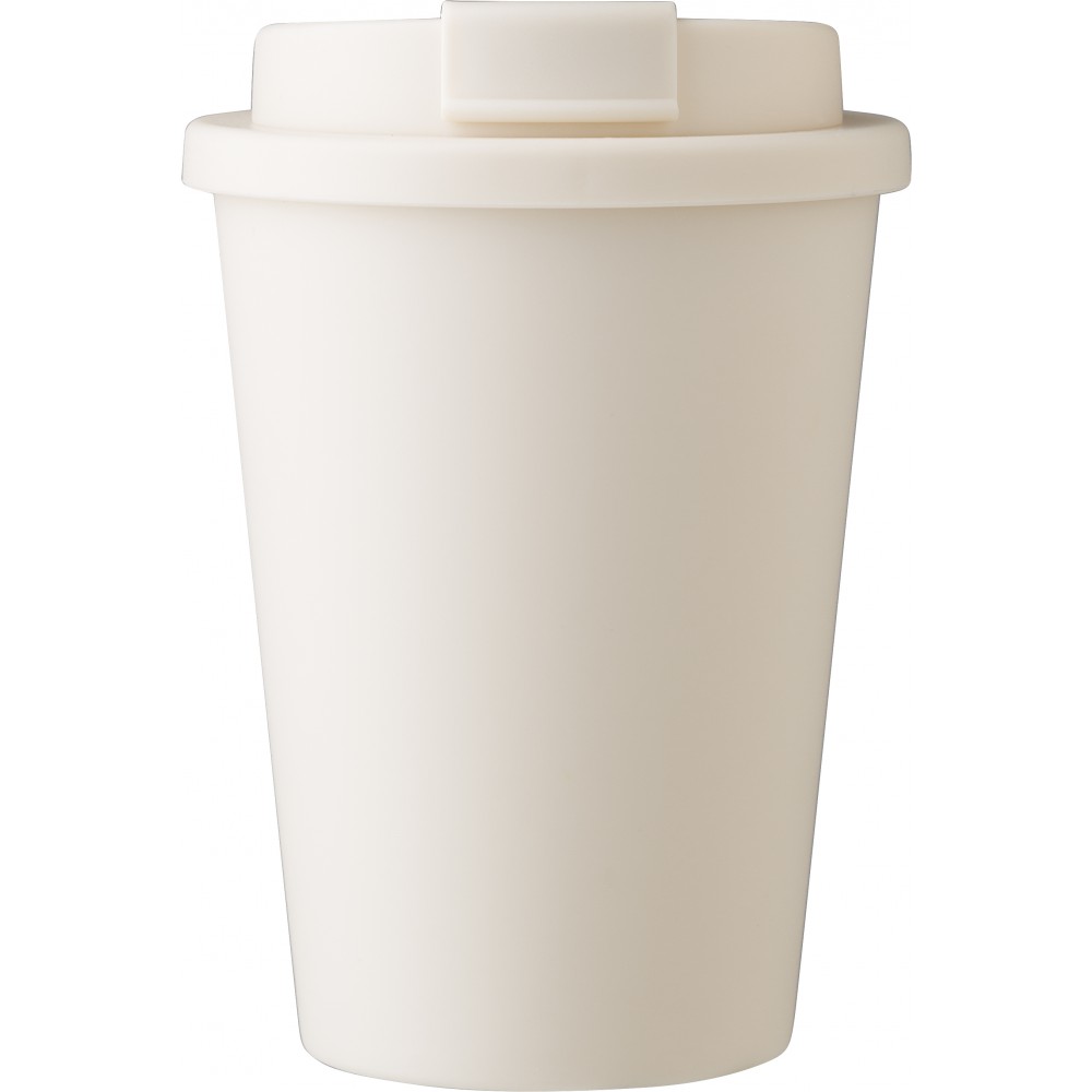 Kávéspohár csavaros fedéllel és felpattintható ivórésszel. Jó hőtartó, hideg és meleg italokhoz is használható. Űrtartalom: 350 ml. PP műanyag.