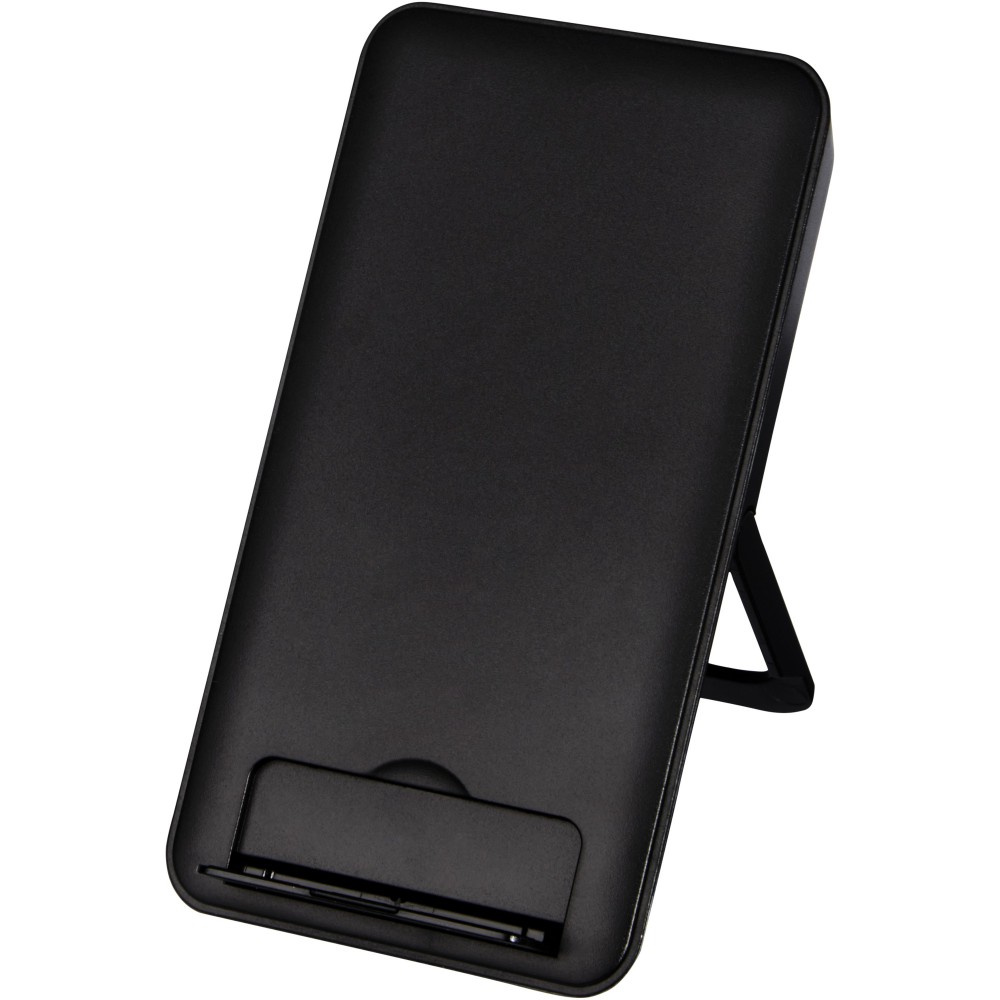 RCS tanúsítvánnyal rendelkező újrahasznosított ABS műanyagból készült vezeték nélküli töltőpad. Telefonállványként is funkcionál, így tökéletes asztali kiegészítő. Az RCS (Recycled Claim Standard) egy szabvány a termék újrahasznosított tartalmának ellenőrzésére a teljes ellátási láncban. Csatlakoztassa a töltőpadot egy számítógéphez vagy laptophoz, és helyezze az eszközt a tetejére a töltés megkezdéséhez. A vezeték nélküli kimenet 10 W (max.) a gyors töltés érdekében. Kompatibilis az összes Qi eszközzel (iPhone 8 vagy újabb és Android készülékek, amelyek támogatják a vezeték nélküli töltést). Ajándékdobozban, használati útmutatóval szállítjuk (mindkettő fenntartható anyagból készült).