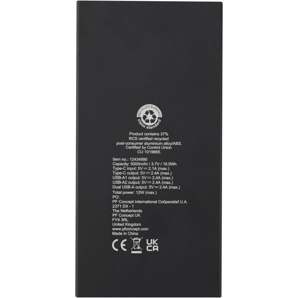 Az elegáns Connect RCS újrahasznosított alumínium 5000 mAh-s powerbank megakadályozza, hogy elveszítsd az energiát! Ez a kiváló minőségű és vékony, lítium-polimer akkumulátorral ellátott powerbank C típusú max. 5V/2.1A bemeneti porttal, C típusú max. 5V/2.4A kimeneti porttal és 2db 5V/2.4A USB-A kimeneti porttal rendelkezik. Használati útmutatóval, 30 cm-es USB-A-C típusú töltőkábellel, 100%-ban újrahasznosított nátronpapír dobozba csomagolva, színes matricával szállítjuk.