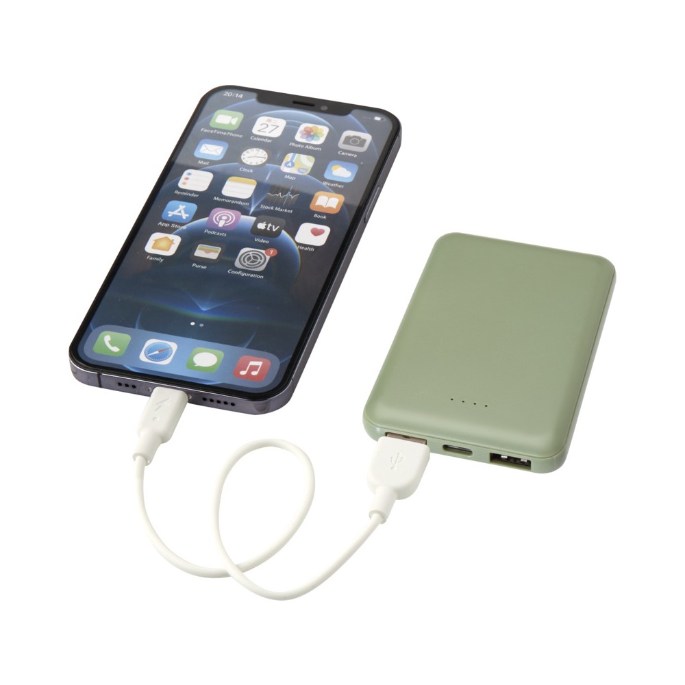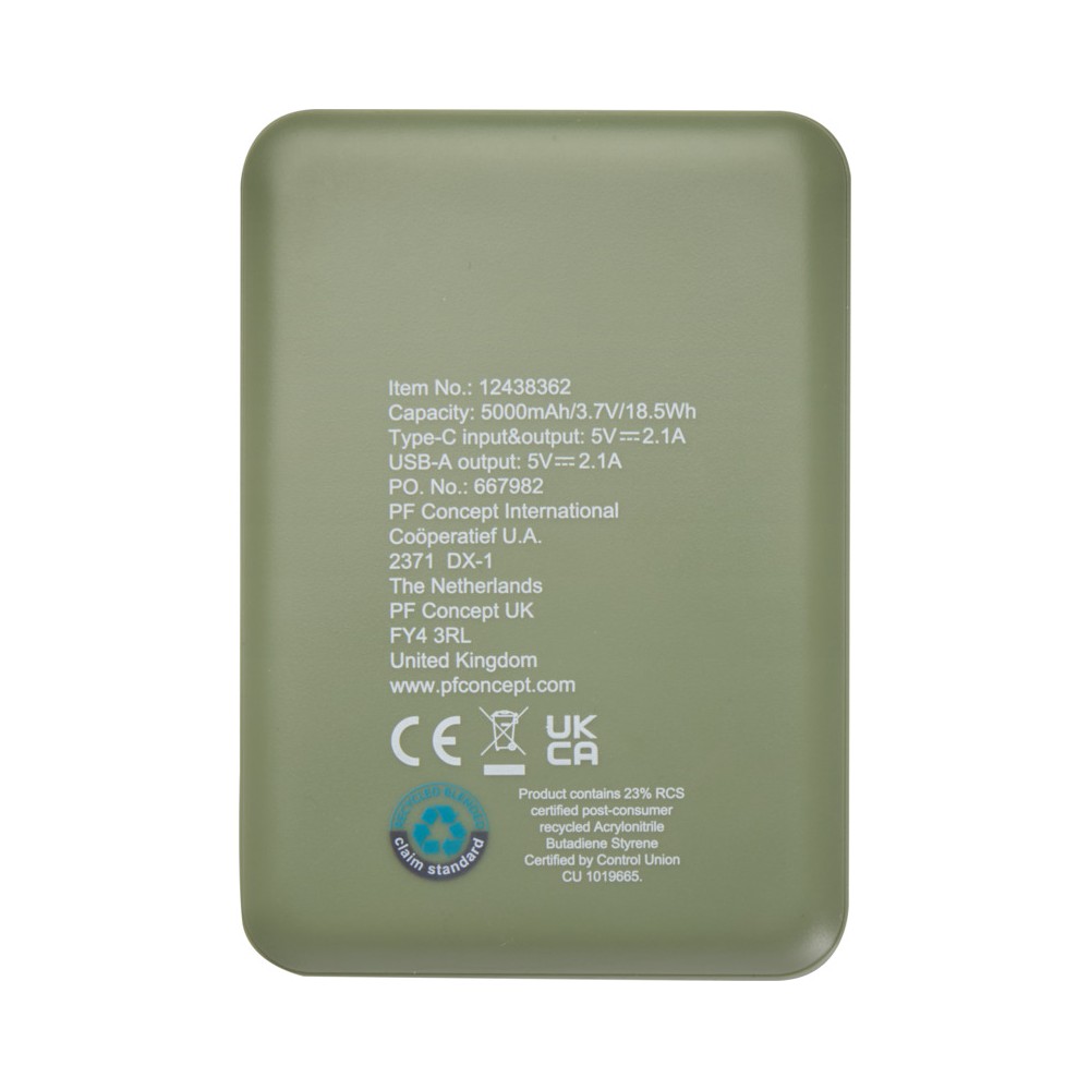 Asama újrahasznosított műanyag powerbank, 5000 mAh, zöld