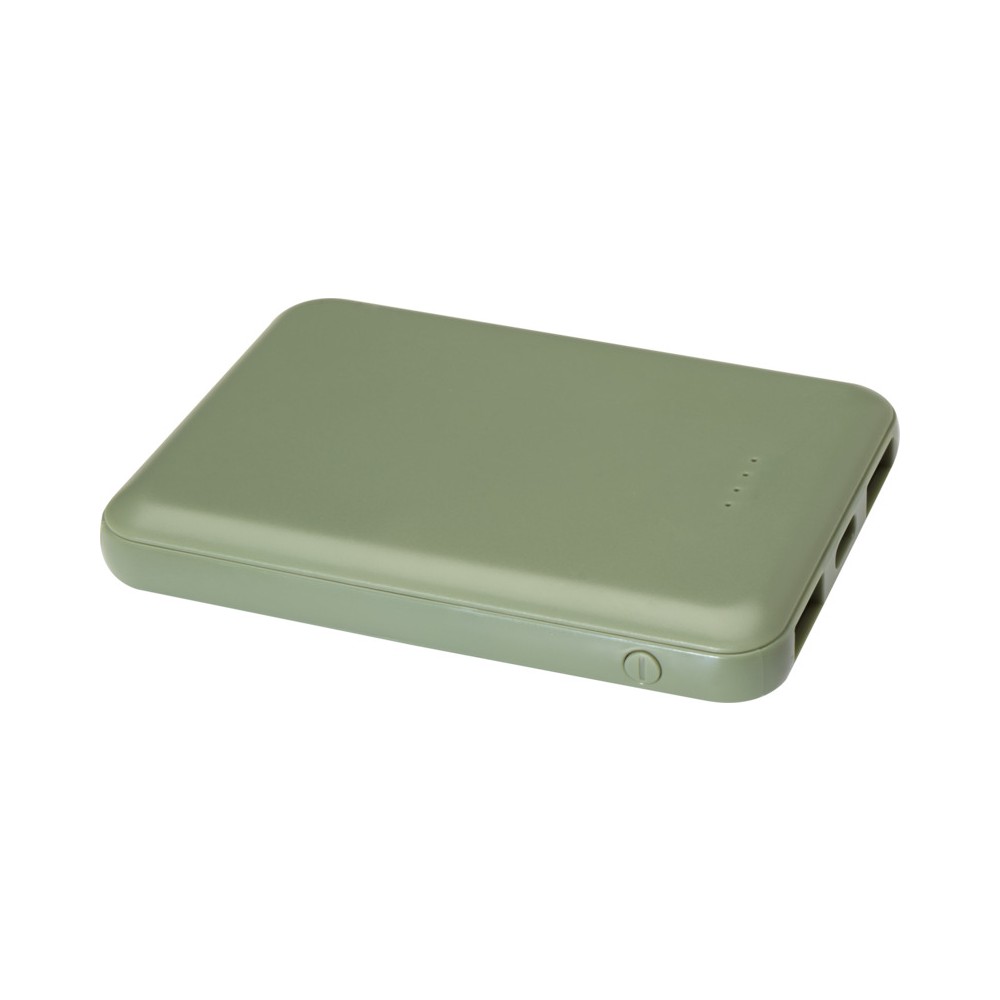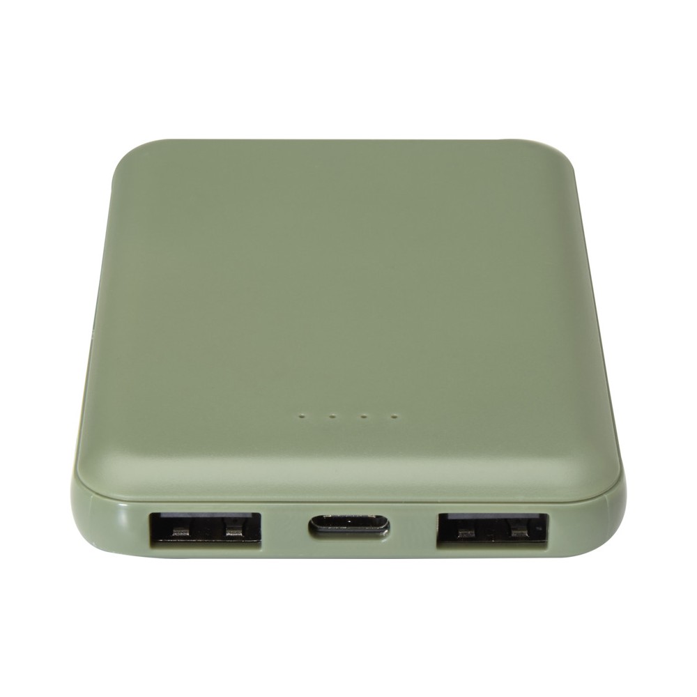 Karcsú és elegáns kialakítású powerbank, Type-C bemeneti/kimeneti porttal és 2 db USB-A porttal, amelyek lehetővé teszik három eszköz egyidejű töltését. A powerbank 5000 mAh kapacitású lítium-polimer akkumulátorral rendelkezik, amely max. 10W teljesítményt biztosít. A powerbank 23%-ban RCS tanúsítvánnyal rendelkező újrahasznosított műanyagból készült. TPE Type-C - USB-A töltőkábellel szállítjuk.